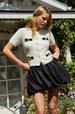 Contrast bow short sleeve cardigan