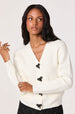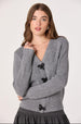 With its embellished bow buttons, this V-neck cardigan is a stylish update to a classic staple — perfect for the office or off-duty.