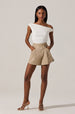 Left side twist detail, off shoulder sleeve