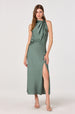 Effortlessly impress in this sleeveless high-neck midi dress in smooth satin. Whether you're attending a gala, wedding or romantic dinner, this dress is your go-to for unforgettable entrances.