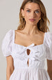 Puff sleeves, peekaboo opening at center front bust