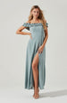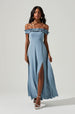 The dreamiest bridesmaid look. The Venetia Dress features an off-shoulder neckline with a statement ruffle trim. Darted bust leads to a maxi-length skirt with a side slit accent. Concealed back zip closure.